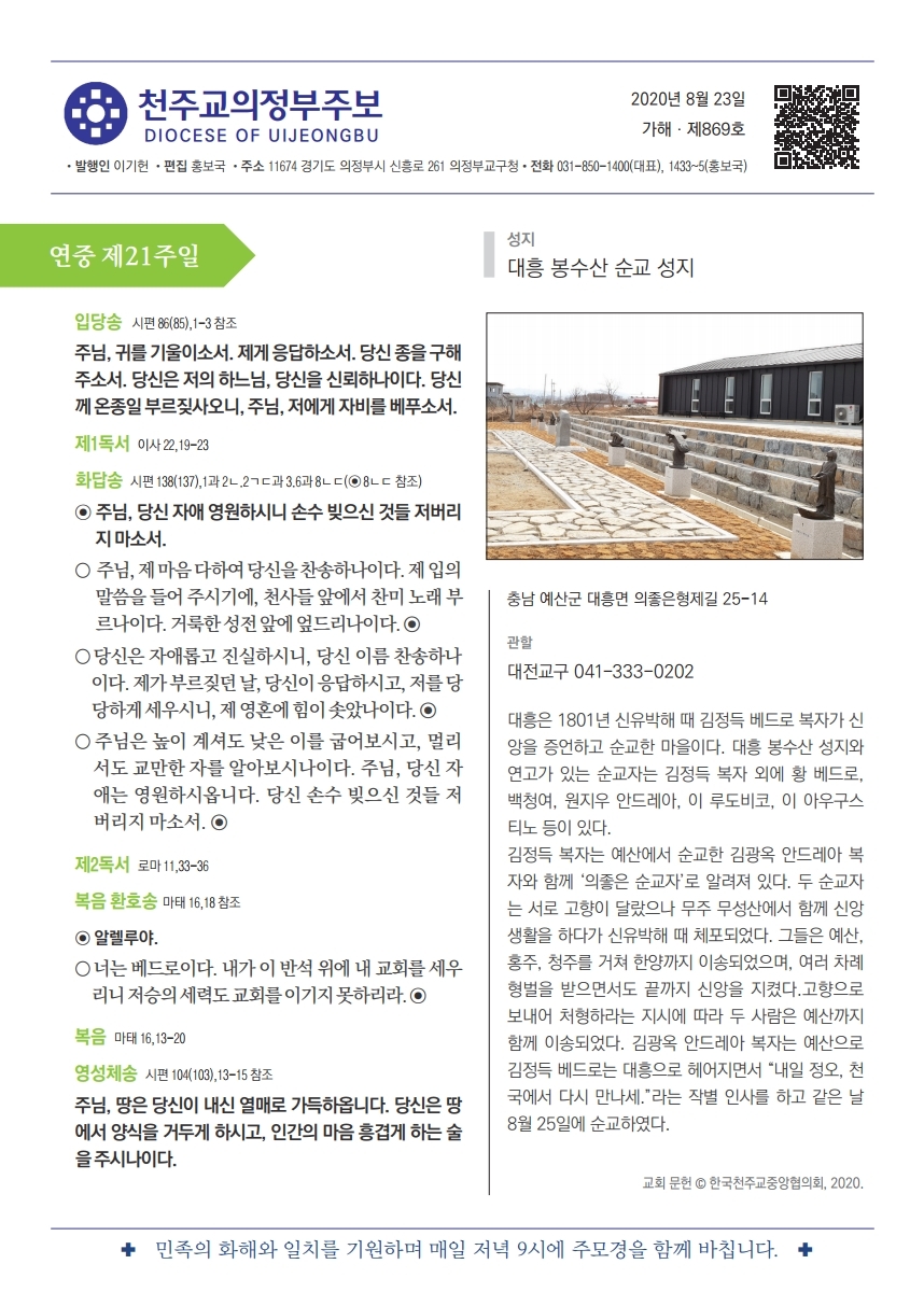 200920[제979호] 성 김대건안드레아 사제와 성 정하상 바오로와 동료 순교자들 대축일
